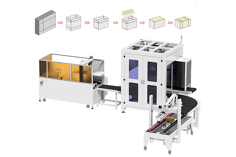 相對于單個獨立的機械設(shè)備,全自動裝箱機整線省去了大量人為的操作,大大減少了各種因人為操作不當而造成生產(chǎn)問題,幫助企業(yè)減少廢品率、提高后端包裝效率。機械手包裝整線一般包含由以下包裝設(shè)備按照企業(yè)產(chǎn)品和要求不同任意組合:裝盒機包裝機、自動開箱機、自動裝箱機、自動封箱機、機械手式碼垛機、自動檢重儀、自動貼標機等等。